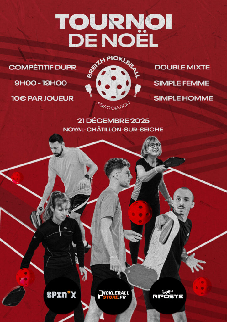 Le dimanche 21 décembre 2025, Breizh Pickleball a organisé son Tournoi de Noël au gymnase Colette Besson à Noyal-Châtillon-sur-Seiche, près de Rennes.